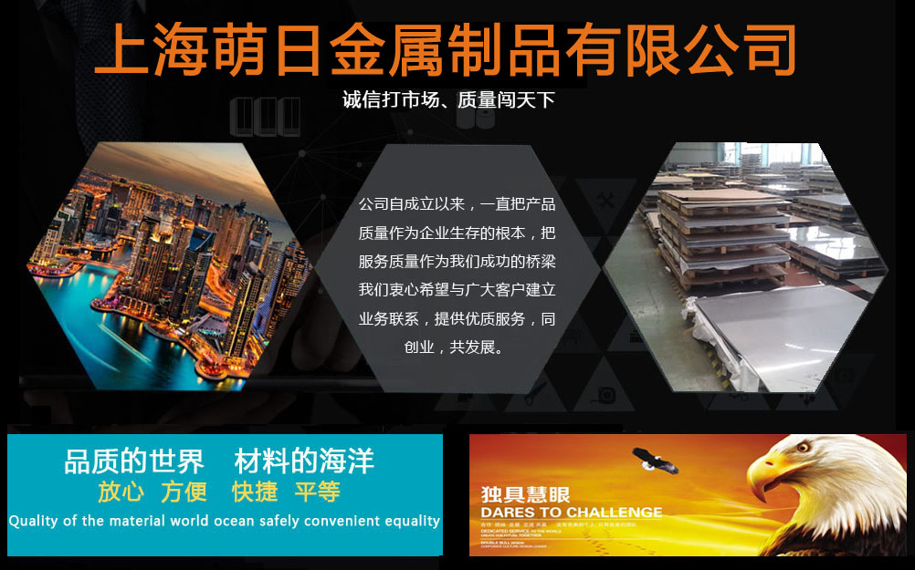上海萌日金屬制品有限公司一直致力于為國內(nèi)各大中型國有企業(yè),外資企業(yè),民營獨資企業(yè),模具制造企業(yè),機械加工企業(yè),石油化工企業(yè)及器械企業(yè)等供應各種特種鋼材,進口/國產(chǎn)鋁合金,不銹鋼,合金結構鋼,42CrMo鋼板,35CrMo鋼板,40Cr鋼板,合金圓鋼,中厚板,鍛件,法蘭,鋼帶,軸承鋼,易切鋼,不銹圓鋼,合金管,矩形鋁管,無縫鋁管,鋁管,工業(yè)鋁管進口及國產(chǎn)方胚/鋼錠/鋁錠,應用于機械,機電,造船,工程,煤礦,紡織,電力,鍋爐, 汽車工業(yè)等各個領域。我公司可以根據(jù)客戶對特殊材料的要求進行材料和產(chǎn)品的定制,可按ISO,ANSI,JIS,DIN,GB等標準定制,我們將本著"誠實守信,合作共贏,長期合作"的理念與新老客戶一起進步發(fā)展。